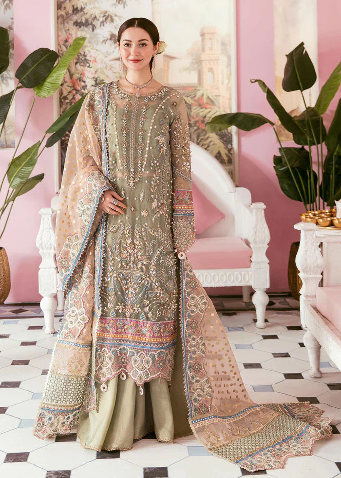 •Embroidered Organza Sleeve& Front & Back Daman Border, 2.5 Mtr