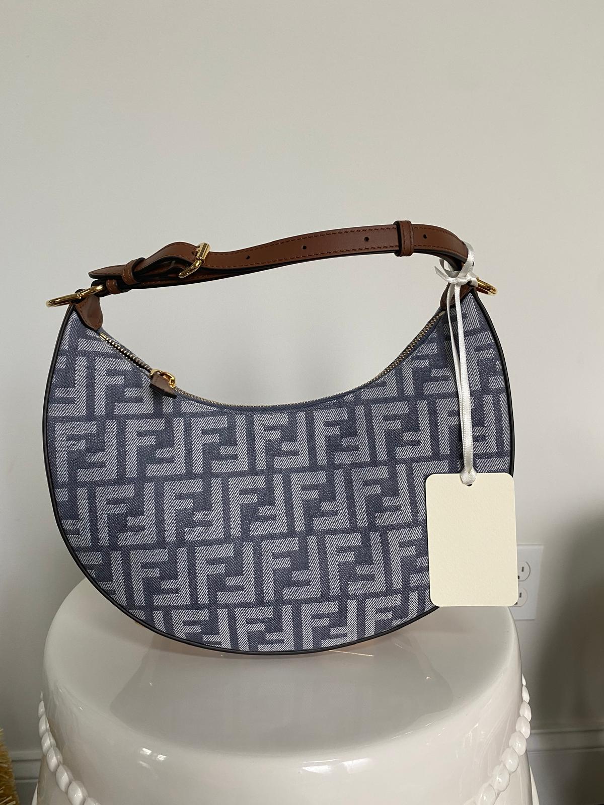 Fendi Blue FF Denim Brown Leather Fendigraphy Small Bag.