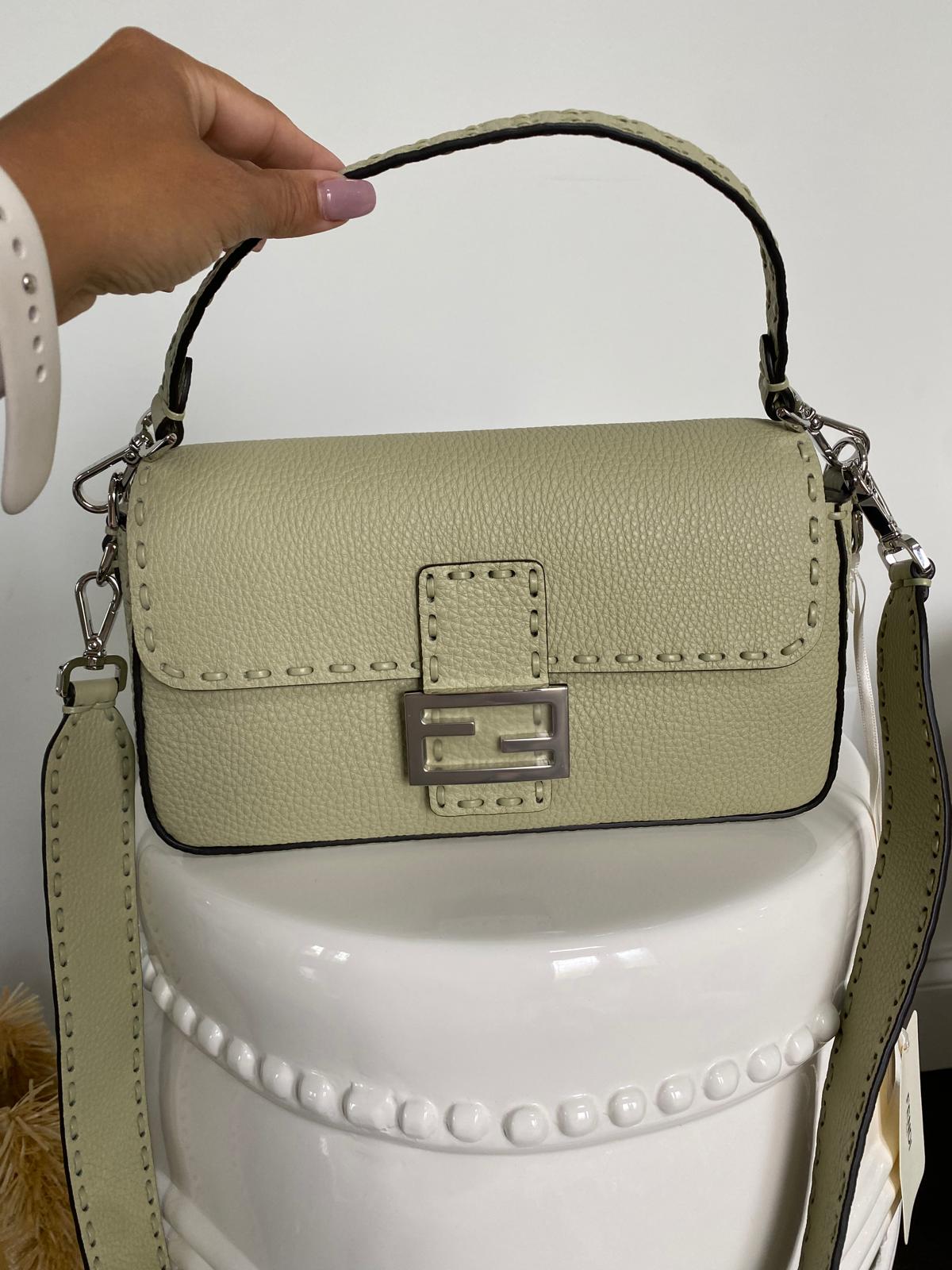 Fendi Sage Green Selleria Medium Baguette Bag